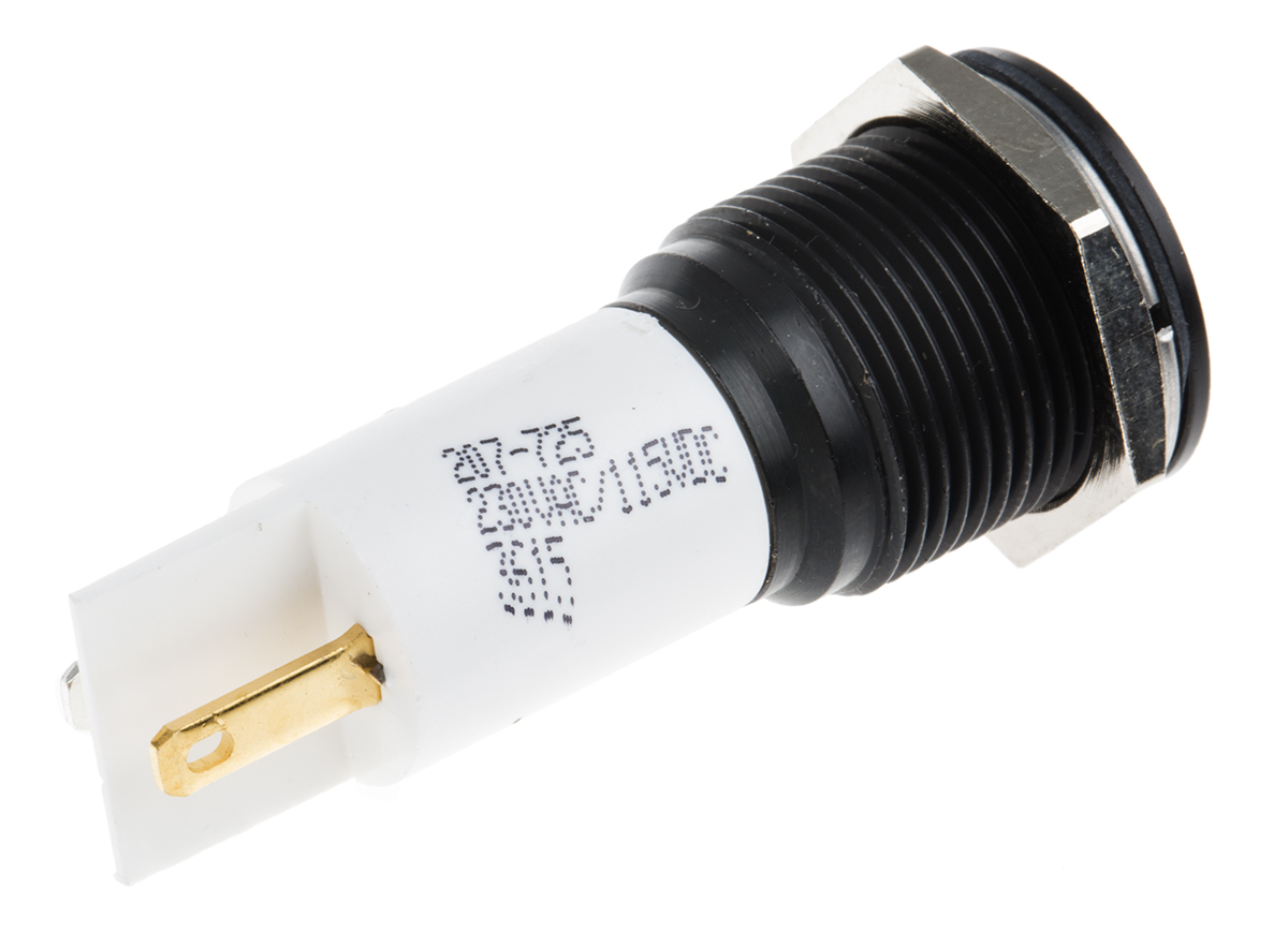 This is White Indicator 115 V dc 230 V ac 10 mm Lamp Size 16mm Mounting Hole Size manufactured by RS Pro. The manufacturer part number is 207-725. The product has a current rating of 3ma. Moreover, the product has a nominal 115 v dc, 230v ac voltage rating. Its accurate length is 62.5mm. It is a type of led lamp.