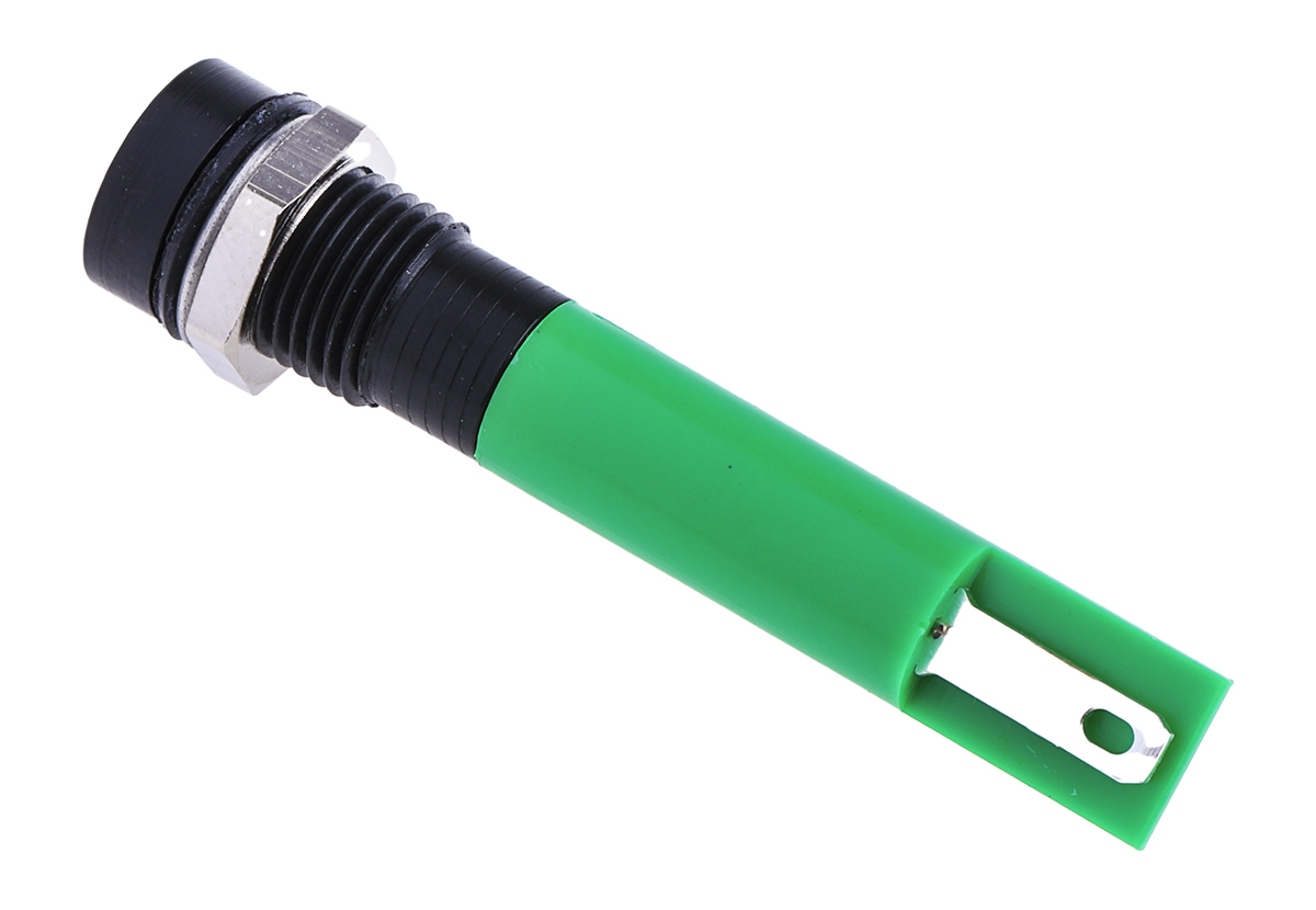 This is Green Indicator 24 V ac/dc 8mm Mounting Hole Size Solder Tab Termination IP67 manufactured by RS Pro. The manufacturer part number is 212-171. The product has a current rating of 17ma. Moreover, the product has a nominal 24v c.c. voltage rating. Its accurate length is 41mm. It is a type of led lamp.