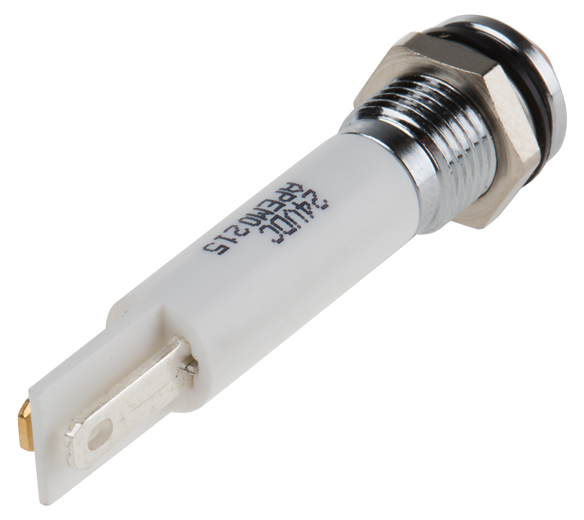 This is Orange Indicator 21.6 → 26.4 V dc 8.5 mm Lamp Size 8mm Mounting Hole Size IP67 manufactured by RS Pro. The manufacturer part number is 843-2477. The product has a current rating of 20ma. Moreover, the product has a nominal 21.6 → 26.4v dc voltage rating. Its accurate length is 28.9mm. It is a type of led lamp.
