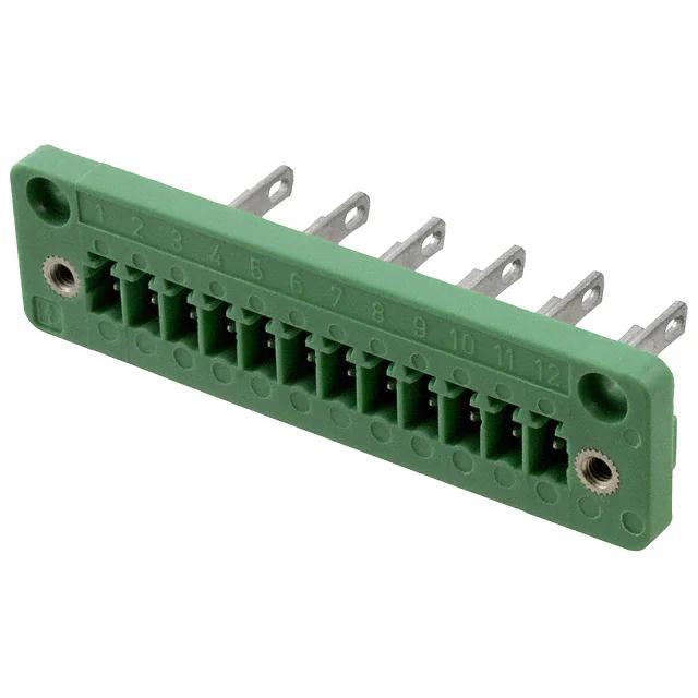 This is manufactured by Phoenix Contact. The manufacturer part number is 1829439. The product dfk-mc 1.5/12-gf-3.81, is a highly preferred choice for users. The product has a current rating of 8a. The product is available in panel mount configuration. Moreover, the product has a nominal 320 v voltage rating. In addition, male is the available "Gender" of the product. The product is made from highly stable and reliable polyamide. Its accurate length is 16.2mm. Furthermore, the product is 60.11mm wide. The product comes in 20.4mm depth. It comes in 1 of rows. Moreover, the product is 3.81mm The product contains 12 contacts. It comes in feed-through header configuration. It is assigned with possible HTSUS value of 8536.69.4040. The product is rohs compliant. Furthermore, the product is 2.367" (60.11mm) wide. It has a panel thickness of 0.020 ~ 0.157" (0.5 ~ 4.0mm). It is shipped in bulk. Its typical moisture sensitivity level is 1 (unlimited). The product carries 1 levels. While 300 v is the typical voltage of the product. It has a long 8 weeks standard lead time. The splendid features of the product include threaded mating lock. It has a classic green colour. The product combicon dfk-mc, is a highly preferred choice for users. It has 12 positions each level. The typical current includes 8 a. Moreover, the product is 0.150" (3.81mm) The product is designated with the ear99 code number