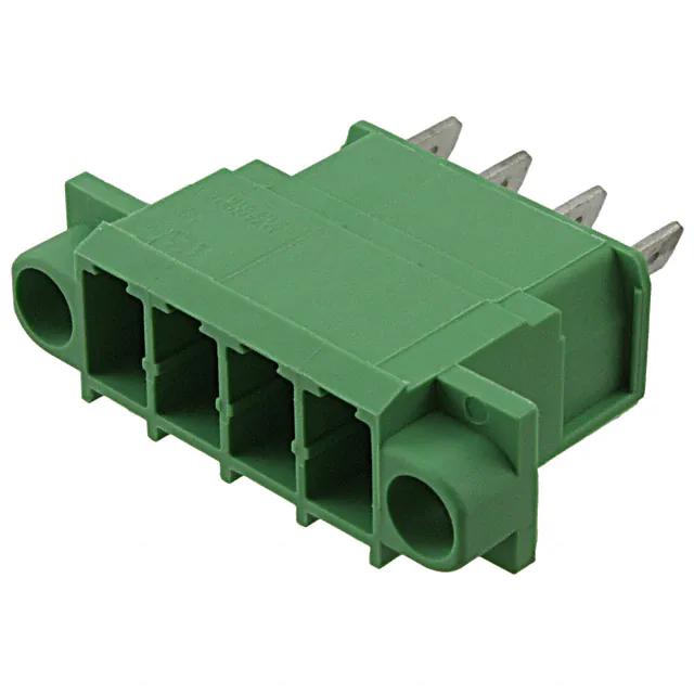 This is manufactured by Phoenix Contact. The manufacturer part number is 1861170. The product dfk-pc 4/4-g-7.62-fs4.8, is a highly preferred choice for users. The product has a current rating of 15a. The product is available in panel mount configuration. Moreover, the product has a nominal 800 v voltage rating. In addition, male is the available "Gender" of the product. The product is made from highly stable and reliable polyamide. Its accurate length is 45.7mm. Furthermore, the product is 29mm wide. The product comes in 14.3mm depth. It comes in 1 of rows. Moreover, the product is 7.62mm The product contains 4 contacts. It comes in header configuration. It is assigned with possible HTSUS value of 8536.69.4040. The product is rohs compliant. Furthermore, the product is 1.799" (45.70mm) wide. It has a panel thickness of 0.039 ~ 0.197" (1.0 ~ 5.0mm). It is shipped in bulk. Its typical moisture sensitivity level is 1 (unlimited). The product carries 1 levels. While 300 v is the typical voltage of the product. It has a long 4 weeks standard lead time. The splendid features of the product include threaded mating lock. It has a classic green colour. The product combicon dfk-pc, is a highly preferred choice for users. It has 4 positions each level. The typical current includes 20 a. Moreover, the product is 0.300" (7.62mm) The product is designated with the ear99 code number