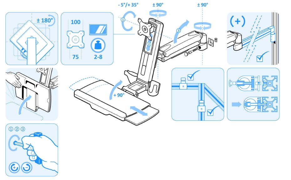 This is Sit-Stand Workstation Max 30in Monitor 1 Supported Display(s) With Extension Arm manufactured by RS PRO. The manufacturer part number is 250-0432. The typical product's weight is 9.2kg. It comes in sit-stand workstation configuration.