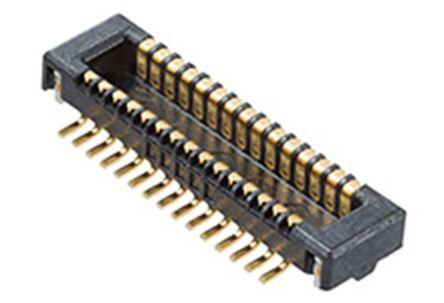 This is 0.4 BtB Plg Assy J-BendTl 22CktEmbsTpPkg manufactured by Molex. The manufacturer part number is 55909-2274-TR625. The product has a current rating of 300.0ma. The product is available in surface mount configuration. It comes in 2 of rows. Moreover, the product is 0.4mm The product contains 22 contacts. The product is made from sturdy brass materials.