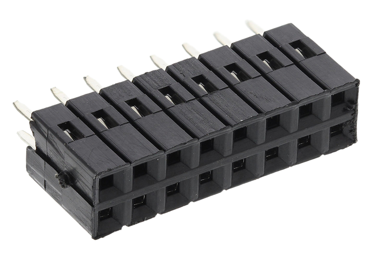 This is 2.54mm Pitch 16 Way 2 Row Straight PCB Socket Through Hole Solder Termination manufactured by RS Pro. The manufacturer part number is 251-8238. The product has a current rating of 12a. The product is available in through hole configuration. It comes in 2 of rows. Moreover, the product is 2.54mm The product contains 16 contacts. It comes in socket strip configuration. The product is made from sturdy bronze materials.