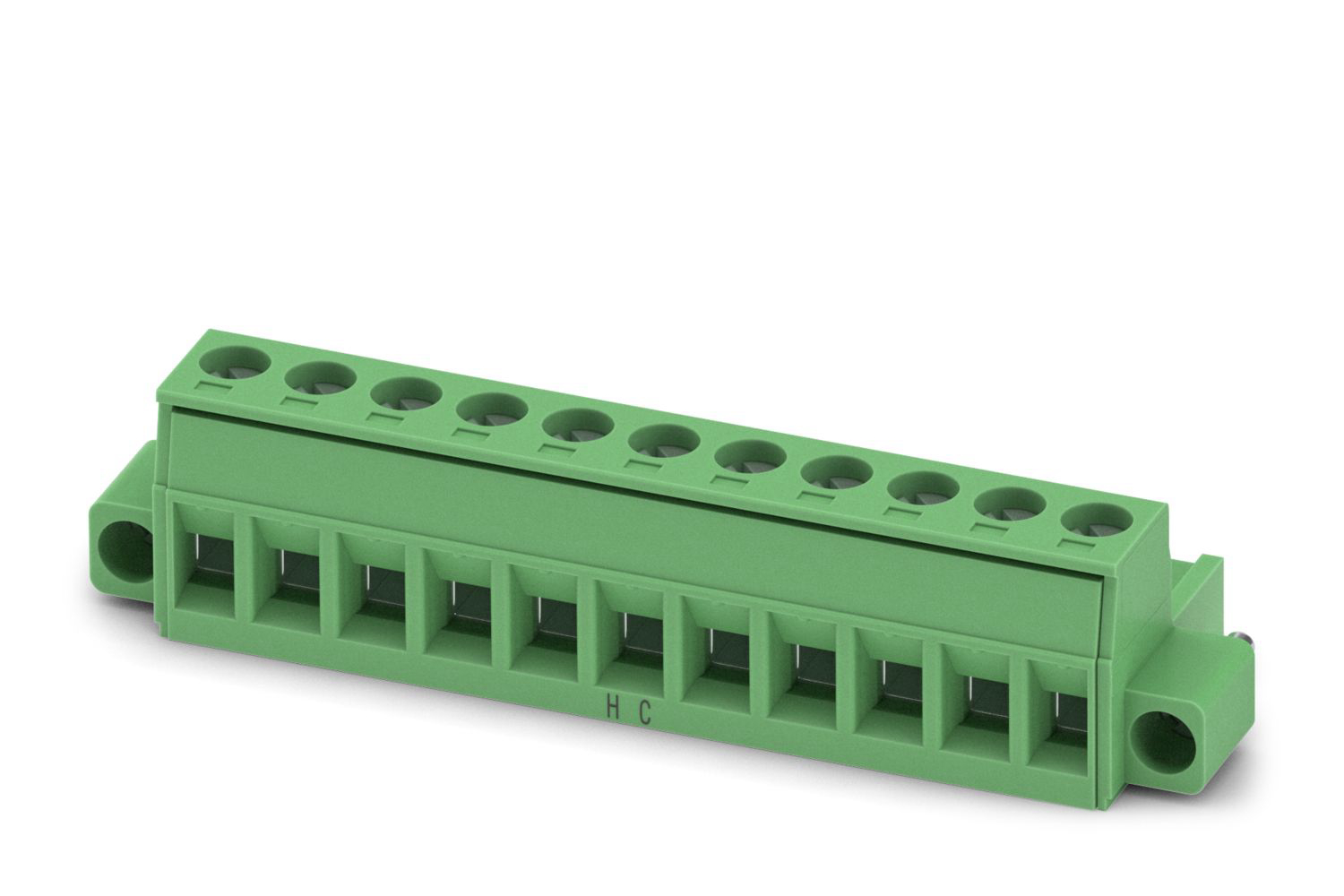 This is manufactured by Phoenix Contact. The manufacturer part number is 1912278. The product is made from highly stable and reliable polyamide, tin. The product has a current rating of 16a. Moreover, the product has a nominal 630 v voltage rating. In addition, female is the available "Gender" of the product. Moreover, the product is 5.08mm The product mstb 2.5 hc/11-stf-5.08, is a highly preferred choice for users. The product contains 11 contacts. It comes in plug configuration. It is assigned with possible HTSUS value of 8536.69.8000. The product is rohs compliant. Moreover, it has screw - rising cage clamp terminal style. The product also features robust polyamide (pa), nylon housing material. It is available in screw size of m3. The typical length of the wire strip is 7mm. It comes in plug, female sockets configuration. The product carries possible position value of 11. A 0.2-2.5mm² of wire gauge. It also a 180° plug wire entry. 0.591" (15.00mm) of insulation height. It carries ul94 v-0 of material flammability rating. It is shipped in bulk. Its typical moisture sensitivity level is 1 (unlimited). An IEC current of 16a. While 12-30 awg is its range or wire gauge. While 300 v is the typical voltage of the product. It carries torque - screw values of 0.5-0.6 nm (4.4-5.3 lb-in). It has a long 5 weeks standard lead time. The mating finish of the contact is tin. The nominal voltage of the product is 630 v. The splendid features of the product include mating flange. The product is available in free hanging (in-line) configuration. It has a classic green colour. The product combicon mstb, is a highly preferred choice for users. It has 11 positions each level. The typical current includes 16 a. Moreover, the product is 0.200" (5.08mm) The product carries 1 levels. The product is designated with the ear99 code number