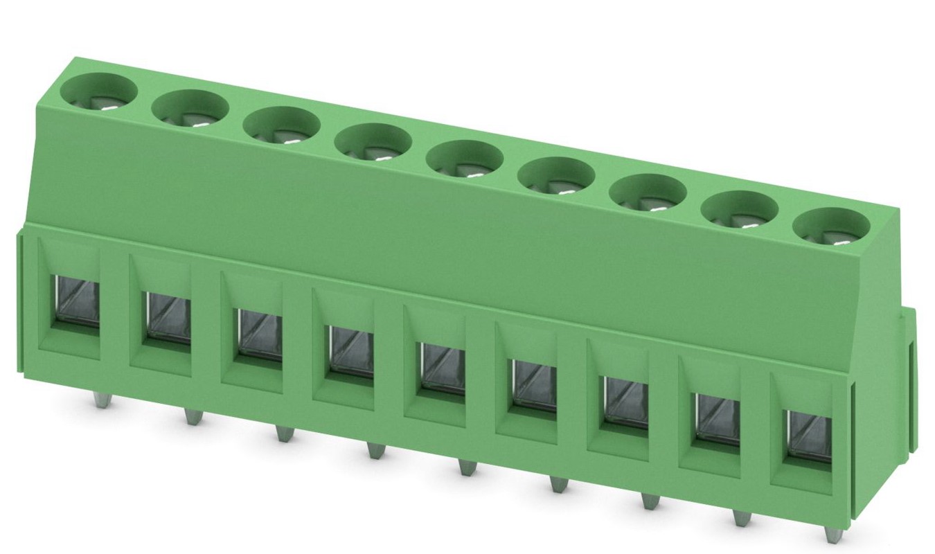 This is COMBICON MKDSN Series 5mm Pitch PCB Terminal Block Through Hole 9 Way manufactured by Phoenix Contact. The manufacturer part number is 1931194. The product has a current rating of 16a. The product is available in through hole configuration. Moreover, the product has a nominal 630 v voltage rating. The product mkdsn 2.5/ 9, is a highly preferred choice for users. The product is made from highly stable and reliable polyamide. Its accurate length is 9.5mm. Moreover, the product is 5mm The product contains 9 contacts. It comes in pcb terminal block configuration. It is assigned with possible HTSUS value of 8536.90.4000. The product also features robust polyamide (pa), nylon housing material. The product has -40°c ~ 100°c operating temperature range. While the contact is copper alloy - tin plated. The mating comes in a horizontal with board orientation. The wire terminals available include screw - clamping yoke, tension sleeve. It is shipped in bulk. Moreover, the product has a wire gauge of 12-30 awg. The product carries 1 levels. It carries torque - screw values of 0.5-0.6 nm (4.4-5.3 lb-in). It has a long 44 weeks standard lead time. Features a 20 a current in A. The splendid features of the product include interlocking (side). It has a classic green colour. The product combicon mkdsn, is a highly preferred choice for users. It has 9 positions each level. It carries a 300 v of voltage. Moreover, the product is 0.197" (5.00mm) The product is designated with the ear99 code number
