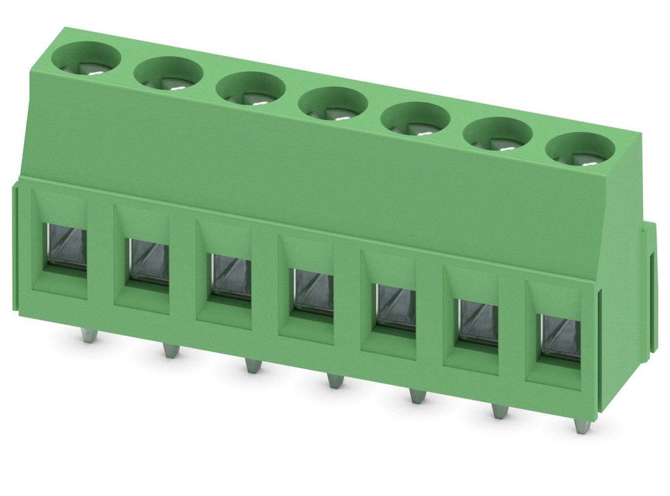 This is COMBICON MKDSN Series 5mm Pitch PCB Terminal Block Through Hole 7 Way manufactured by Phoenix Contact. The manufacturer part number is 1989152. The product has a current rating of 16a. The product is available in through hole configuration. Moreover, the product has a nominal 630 v voltage rating. The product mkdsn 2.5/ 7, is a highly preferred choice for users. The product is made from highly stable and reliable polyamide. Its accurate length is 9.5mm. Moreover, the product is 5mm The product contains 7 contacts. It comes in pcb terminal block configuration. It is assigned with possible HTSUS value of 8536.90.4000. The product also features robust polyamide (pa), nylon housing material. The product has -40°c ~ 100°c operating temperature range. While the contact is copper alloy - tin plated. The mating comes in a horizontal with board orientation. The wire terminals available include screw - clamping yoke, tension sleeve. It is shipped in bulk. Moreover, the product has a wire gauge of 12-30 awg. The product carries 1 levels. It carries torque - screw values of 0.5-0.6 nm (4.4-5.3 lb-in). It has a long 48 weeks standard lead time. Features a 20 a current in A. The splendid features of the product include interlocking (side). It has a classic green colour. The product combicon mkdsn, is a highly preferred choice for users. It has 7 positions each level. It carries a 300 v of voltage. Moreover, the product is 0.197" (5.00mm) The product is designated with the ear99 code number