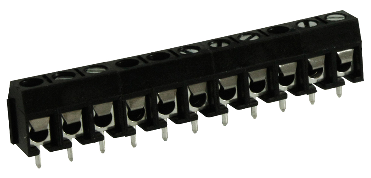 This is 5mm Pitch Straight PCB Terminal Block PCB Mount 11 Way manufactured by RS Pro. The manufacturer part number is 897-0764. The product has a current rating of 16a. The product is available in through hole configuration. Moreover, the product has a nominal 250 v voltage rating. In addition, male is the available "Gender" of the product. The product is made from highly stable and reliable polyamide. Its accurate length is 55mm. Furthermore, the product is 7.6mm wide. The product comes in 10.2mm depth. It comes in 1 of rows. Moreover, the product is 5mm The product contains 11 contacts. It comes in pcb terminal block configuration.
