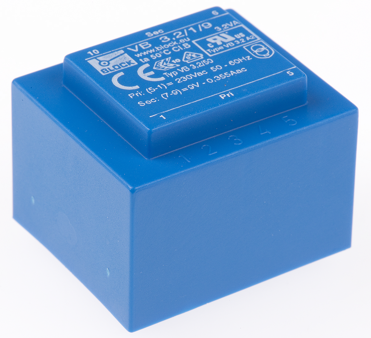 This is 9V ac 1 Output Through Hole PCB Transformer 3.2VA manufactured by Block. The manufacturer part number is VB 3,2/1/9. Additionally, the product is supplied with 1 outputs. The given dimensions of the product include 41 x 35 x 30.8mm. The typical product's weight is 170g. Its accurate length is 41mm. Furthermore, the product is 35mm wide. The product comes in 30.8mm depth. The product is available in through hole configuration.