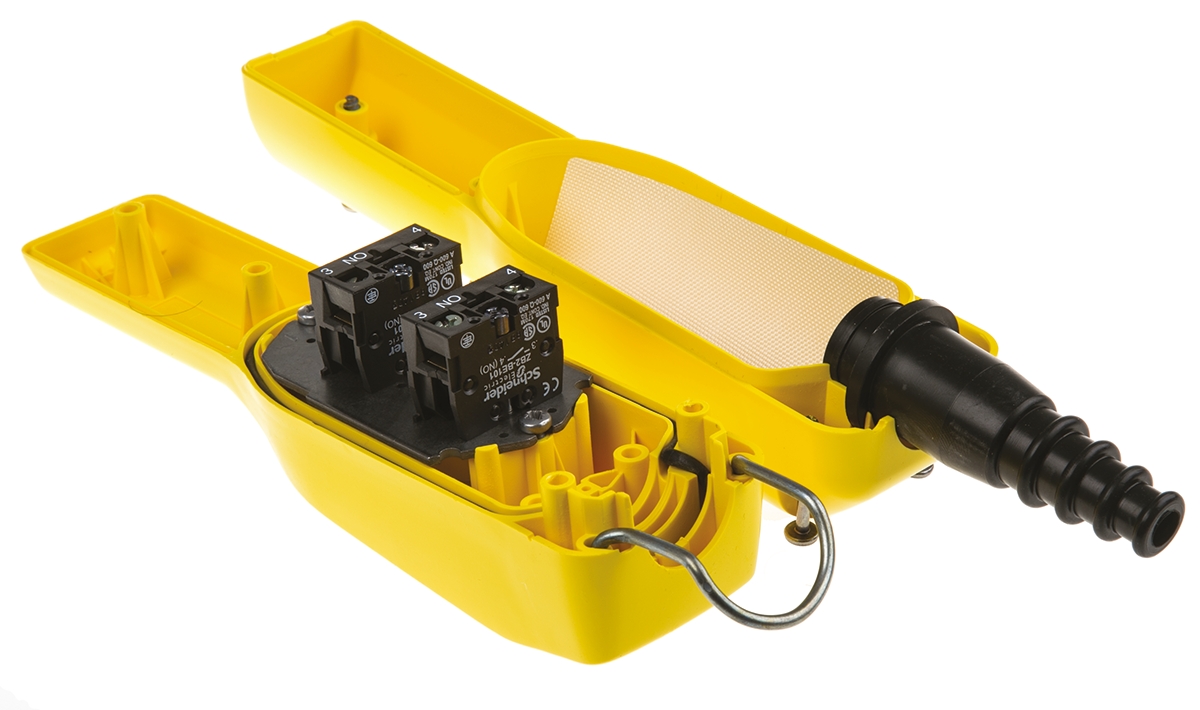 This is NO 2 Push Button Pendant Station 3 A ac 270 mA dc Yellow 600V IP65 2 Black White manufactured by Schneider Electric. The manufacturer part number is XACA201. Whereas, the minimum operating temperature of the product is -25°c. It has a maximum operating temperature of +70°c. The terminal is a screw type.