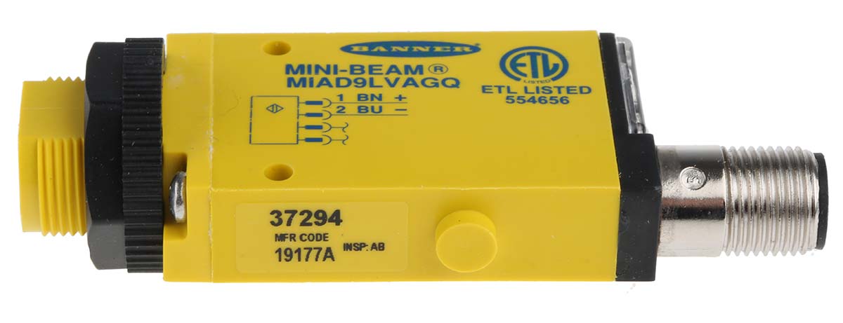 This is Retro-reflective Photoelectric Sensor Maximum of 2 m Detection Range IP67 Block Style manufactured by Banner. The manufacturer part number is RS_855-8327. The product also features robust pbt housing material. Whereas, the minimum operating temperature of the product is -40°c. It responds within 5 ms. It has a maximum operating temperature of +70°c. The terminal is a m12 connector type. Uses led as a light source.
