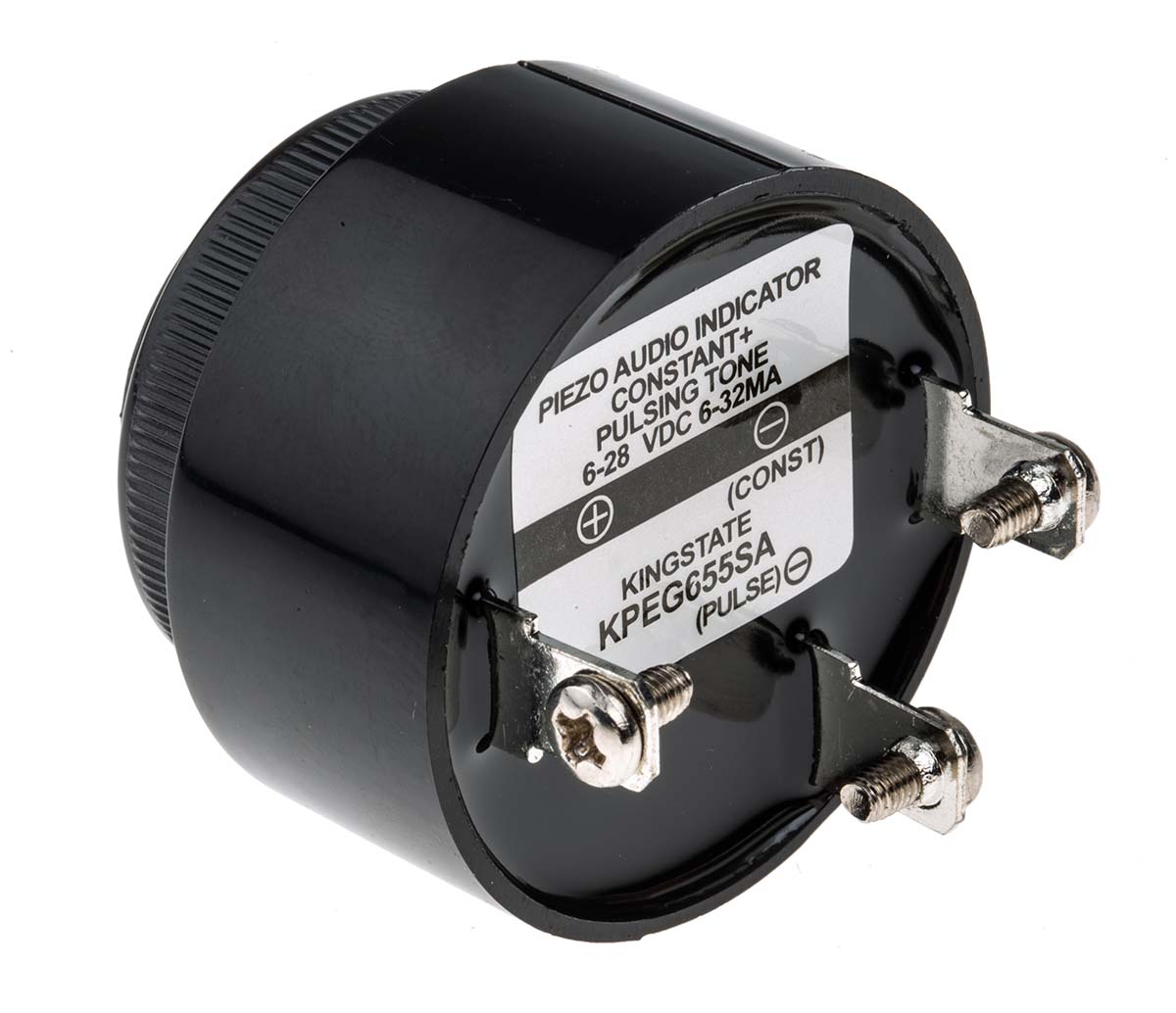 This is 92dB Panel Mount Continuous Fast Pulse Internal Buzzer 2300 → 3300 Hz manufactured by RS Pro. The manufacturer part number is 622-1556. Its diameter is 42.5mm. The given dimensions of the product include 42.5 (dia.) x 42.5mm. The product is available in panel mount configuration. The product features a internal drive. In addition, the height is 33mm. Whereas, the minimum operating temperature of the product is -30°c. It has a maximum operating temperature of +85°c.