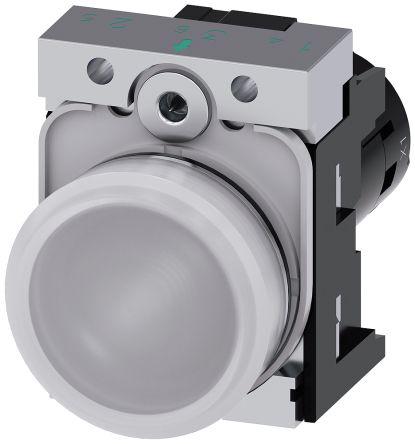 This is SIRIUS ACT White LED Indicator 22.3mm Cutout IP66 IP67 IP69(IP69K) Round manufactured by Siemens. The manufacturer part number is 3SU1251-6AF60-1AA0. Moreover, the product has a nominal 230v ac voltage rating. The product sirius act, is a highly preferred choice for users. The product's body is nicely designed from metal materials. It is a type of led lamp.