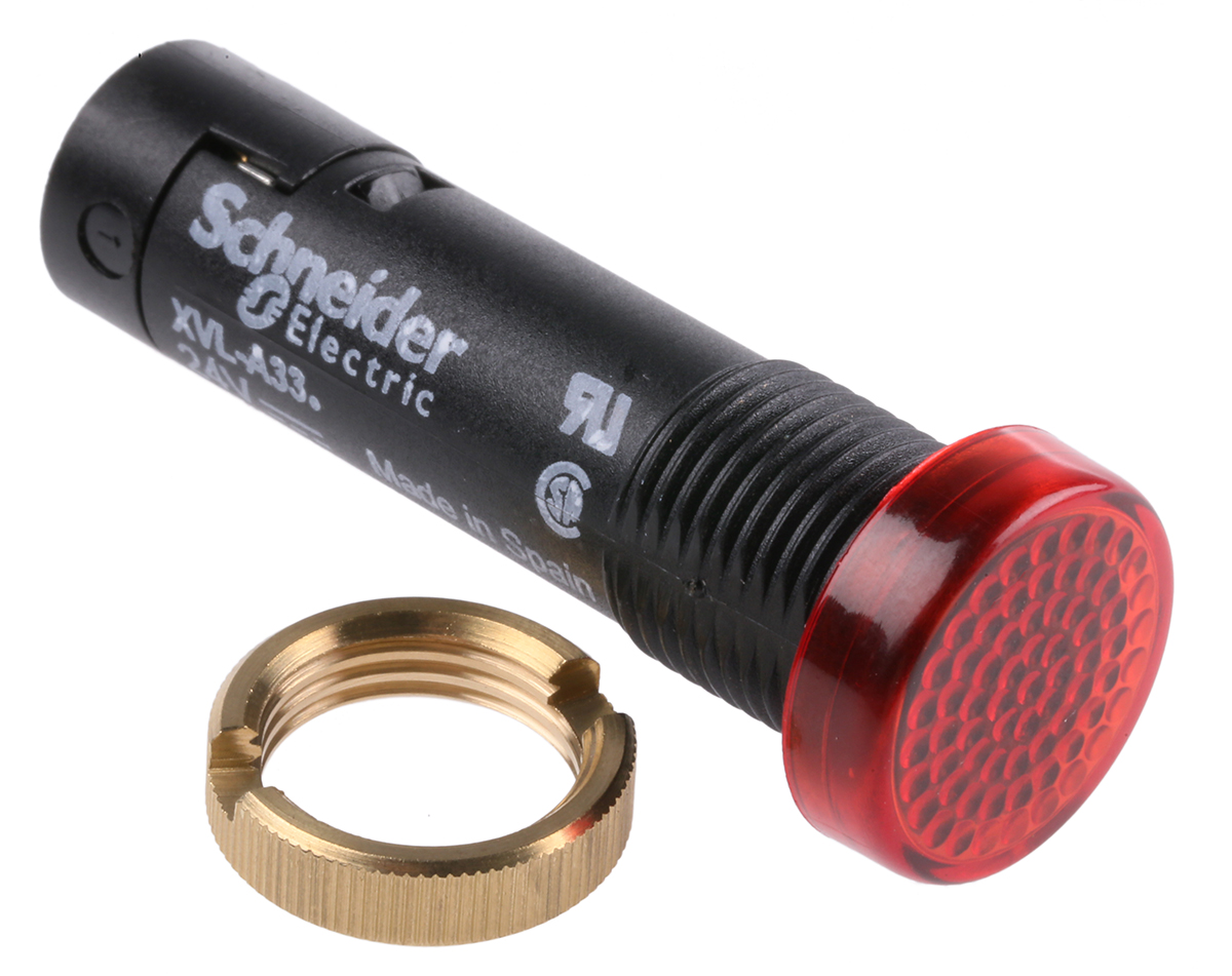 This is Red LED Pilot Light 12mm Cutout IP40 IP65 24 V dc manufactured by Schneider Electric. The manufacturer part number is XVLA334. The product is available in panel mount configuration. Moreover, the product has a nominal 24v dc voltage rating. It is a type of led lamp.