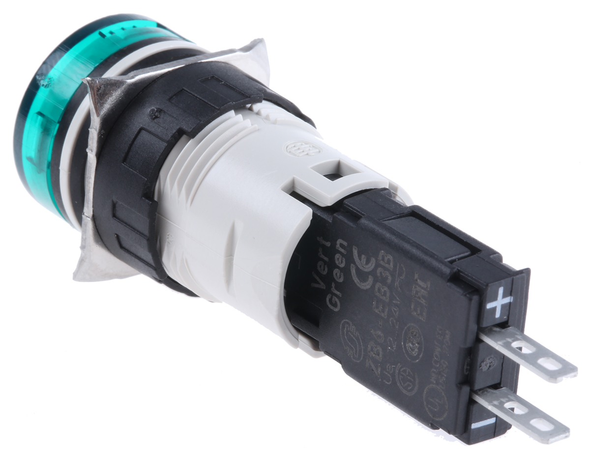 This is Harmony XB6 Green LED Pilot Light 16mm Cutout IP65 24 V ac/dc 15 mA manufactured by Schneider Electric. The manufacturer part number is XB6AV3BB. The product has a current rating of 15ma. The product is available in panel mount configuration. The product harmony xb6, is a highly preferred choice for users. Moreover, the product has a nominal 24v ac/dc voltage rating. The product's body is nicely designed from plastic materials. It is a type of led lamp. The terminal is a quick connect type.