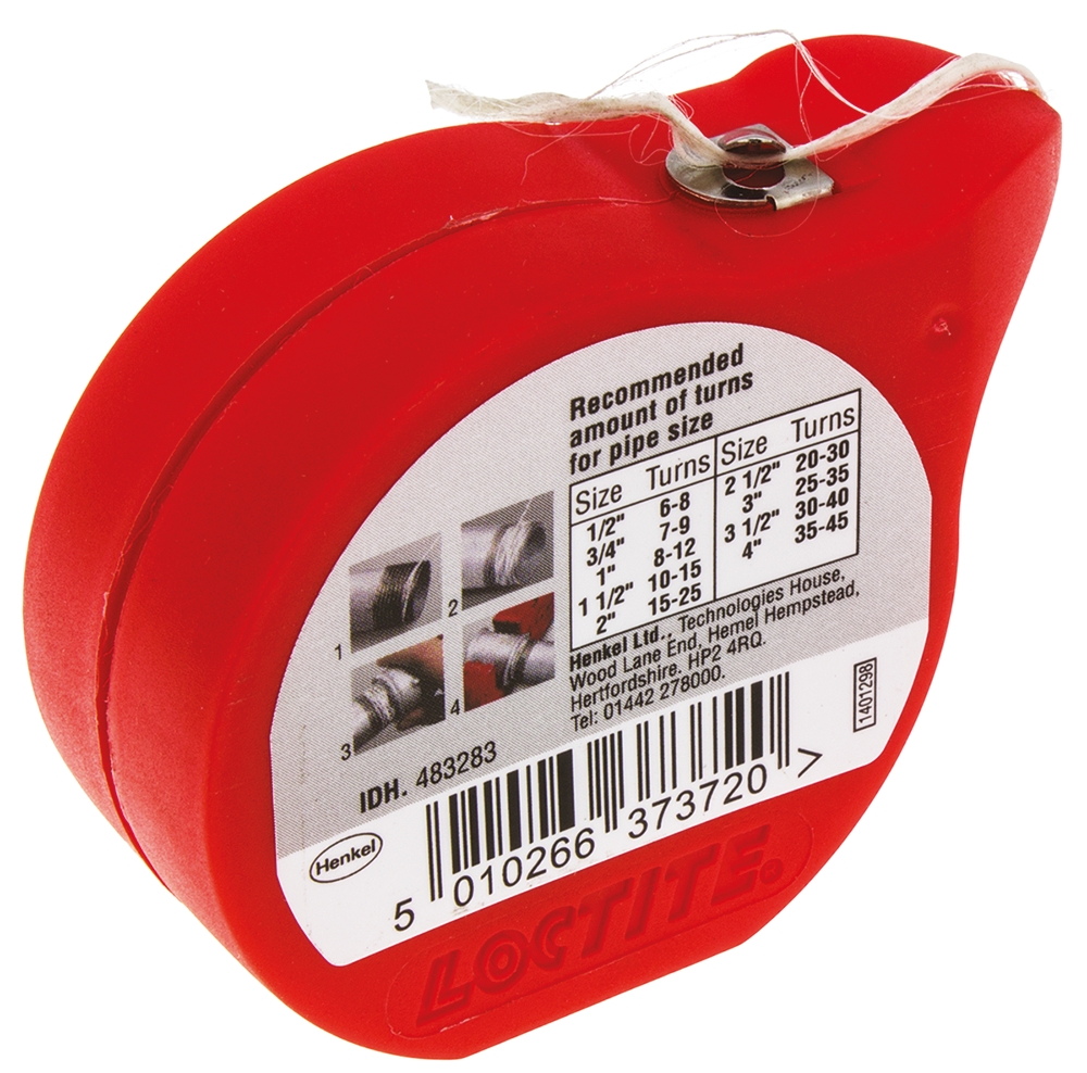 This is 50m of White Pipe Sealing Cord manufactured by Loctite. The manufacturer part number is 483283. It has a maximum operating temperature of +150°c.