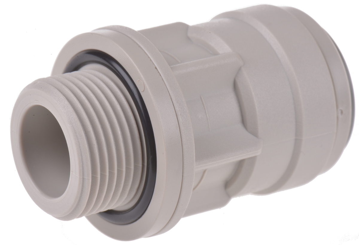 This is Push Fit Fitting Acetal Straight Adapter 22mm od x3/4 in BSP manufactured by JG Speedfit. The manufacturer part number is CM012216S. The product is made from highly stable and reliable acetal. It has a typical thread size of 3/4in.