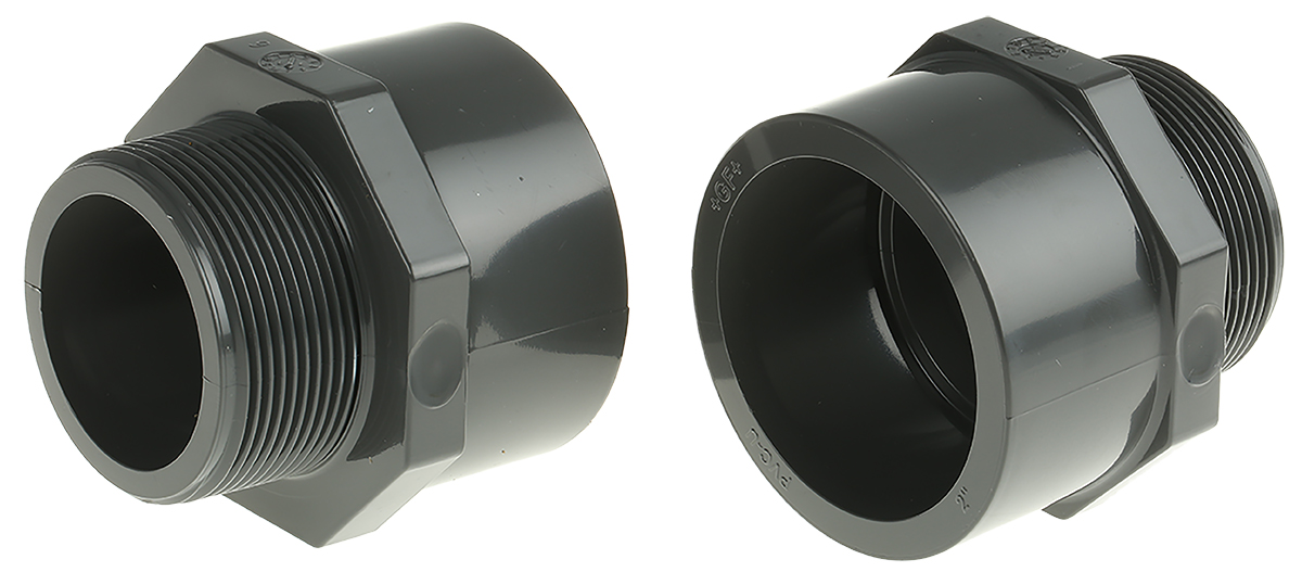 This is Straight PVC-U Adapter 2 in R Male x 2 in BSP Male manufactured by Georg Fischer. The manufacturer part number is 721911711. The product is made from highly stable and reliable pvc-u. It has a typical thread size of 2in. Its accurate length is 76mm.