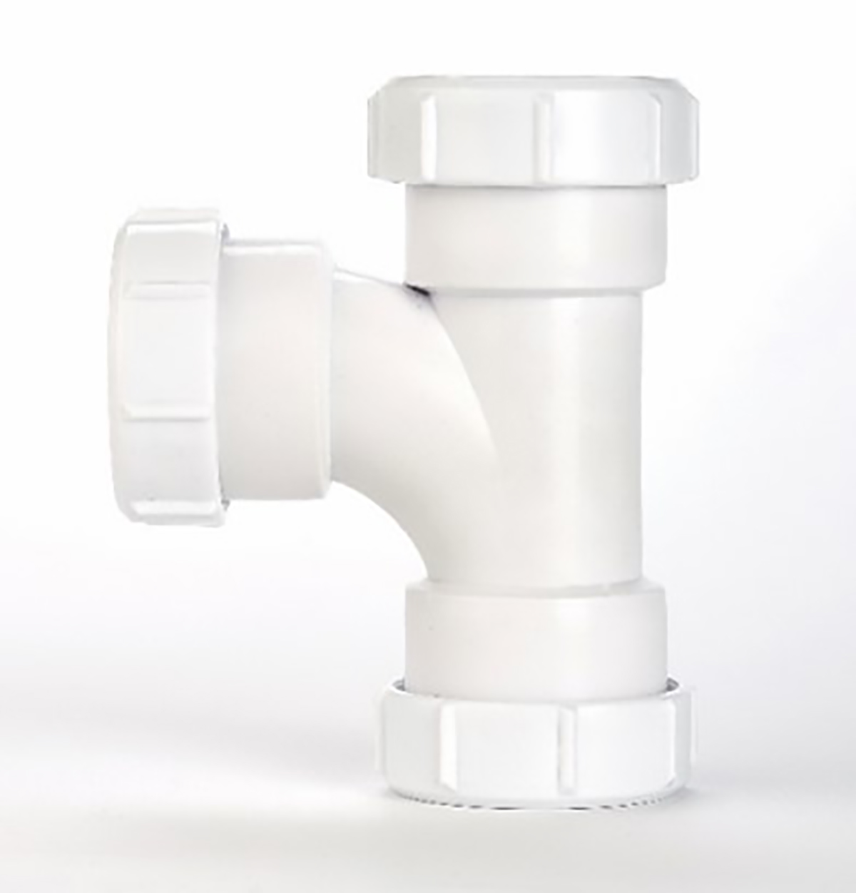 This is 88° Tee Swept Tee PVC Pipe Fitting manufactured by RS PRO. The manufacturer part number is 196-0549.