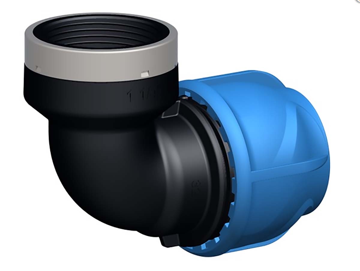 This is 90° 90° Elbow PVC Pipe Fitting manufactured by Georg Fischer. The manufacturer part number is 158400022. It has a typical thread size of 1/2in.