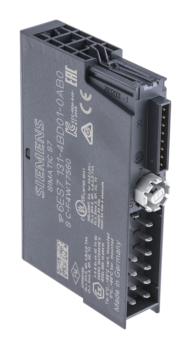 This is SIMATIC ET 200S PLC I/O Module 4 Inputs 500 mA 24 V dc 81 x 15 x 52 mm manufactured by Siemens. The manufacturer part number is 6ES7131-4BD01-0AB0. The given dimensions of the product include 81 x 15 x 52 mm. The product 6es7, is a highly preferred choice for users. It is a type of plc i/o module accessory. It carries digital input type. It has a maximum operating temperature of +55°c. Furthermore, the cable has a 600 m, 1000m of length.