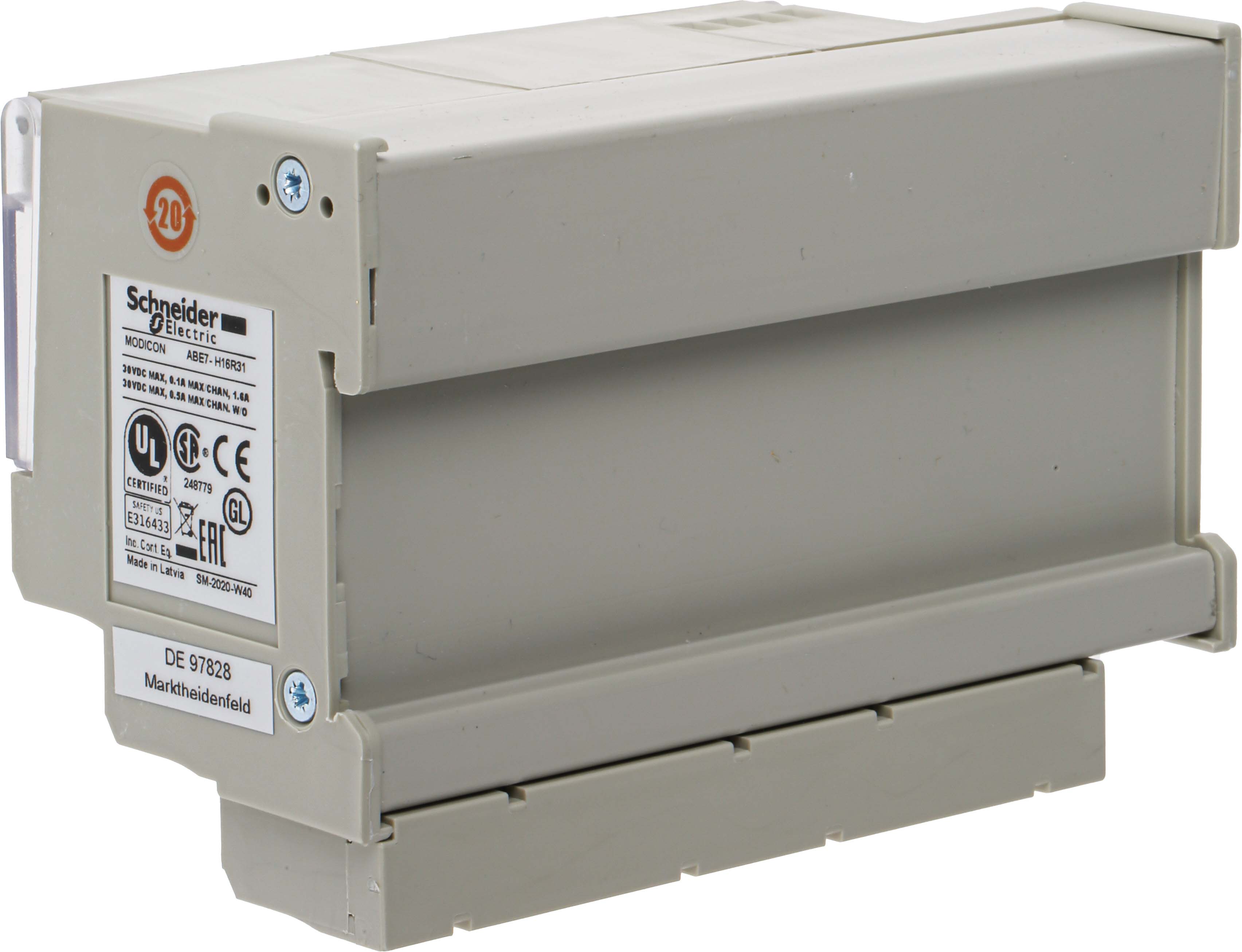 This is PLC I/O Module 0.5 (Per Channel) A 1.8 (Per Common) A 19 → 30 V dc manufactured by Schneider Electric. The manufacturer part number is ABE7H16R31. It is a type of plc i/o module accessory.