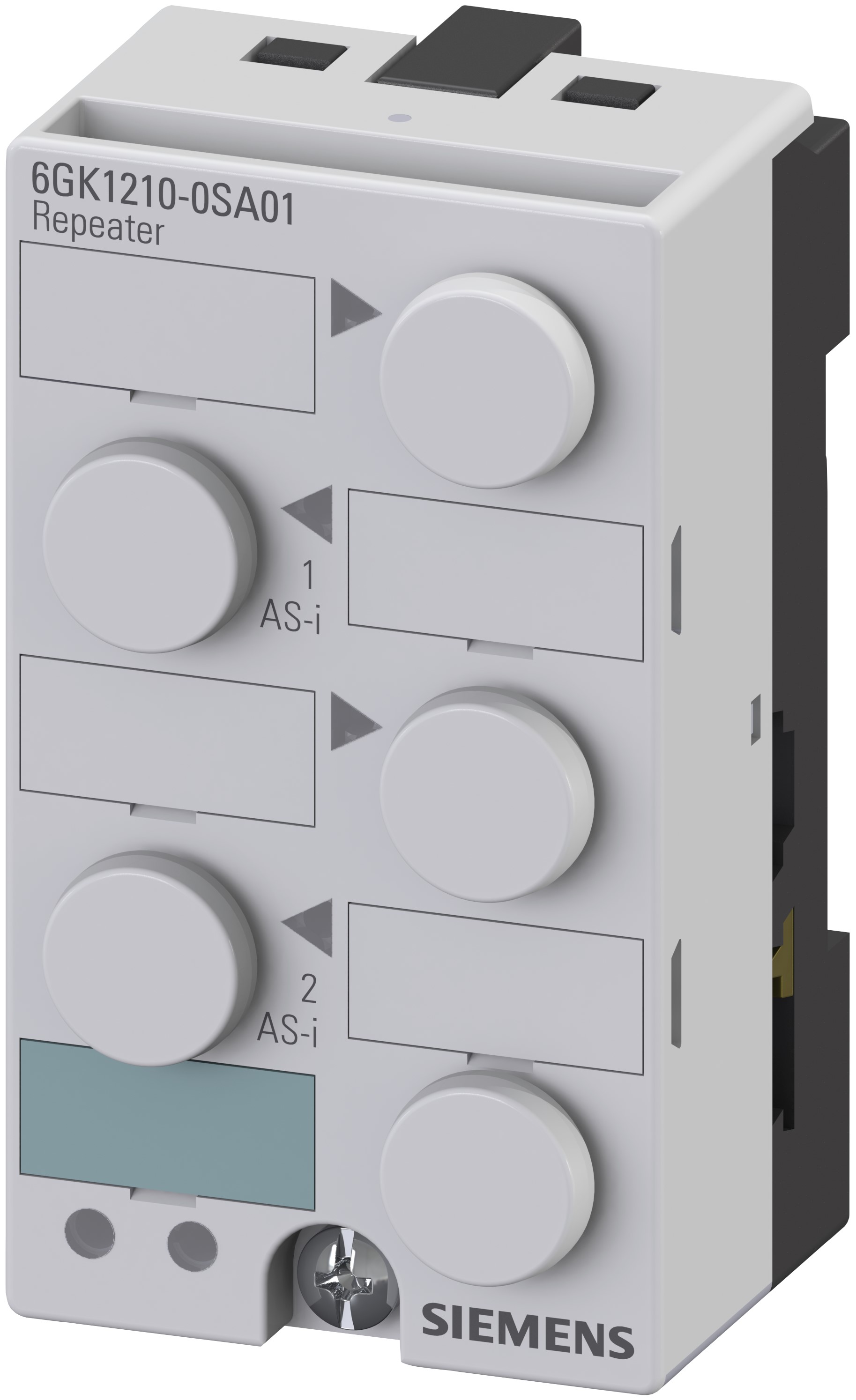 This is Interface Module for use with SIMATIC NET AS-I manufactured by Siemens. The manufacturer part number is 6GK1210-0SA01. It is a type of repeater accessory.