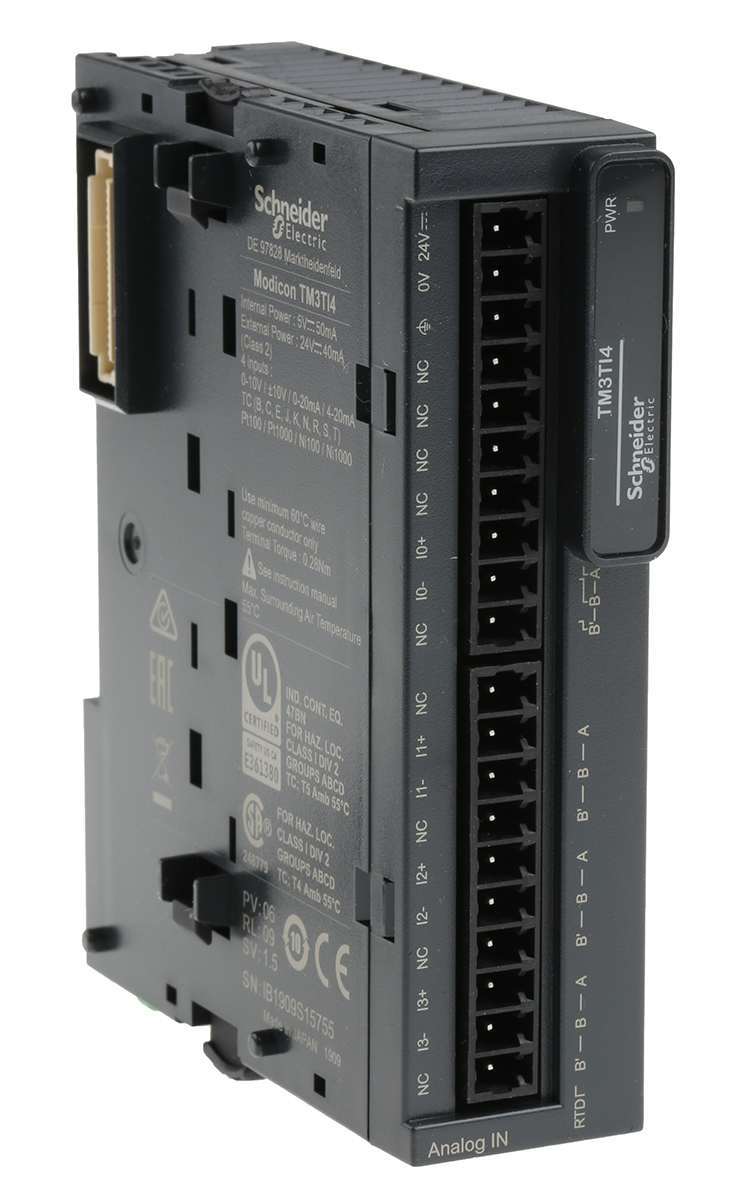 This is TM3 Series PLC I/O Module 4 Inputs -10 → 10 V dc 90 x 23.6 X 70 mm manufactured by Schneider Electric. The manufacturer part number is TM3TI4. The given dimensions of the product include 90 x 23.6 x 70 mm. The product fp2, is a highly preferred choice for users. It is a type of plc i/o module accessory. It carries current, temperature, voltage input type.