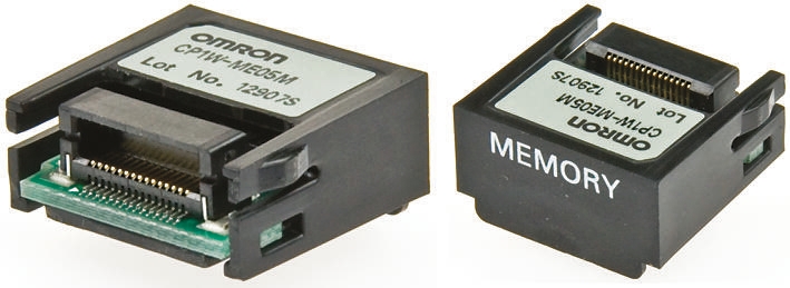 This is PLC Expansion Module Memory Cassette manufactured by Omron. The manufacturer part number is CP1W-ME05M. It is a type of plc expansion module accessory.