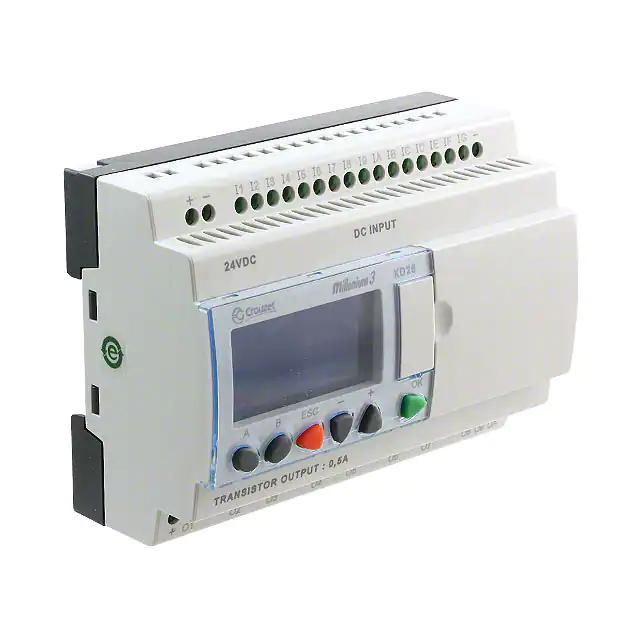 This is Millenium 3 Logic Module 24 V dc 16 x Input 10 x Output With Display manufactured by Crouzet. The manufacturer part number is 88974162. Additionally, the product is supplied with 10 outputs. The given dimensions of the product include 100 x 71.2 x 68 mm. The product is available in din rail configuration. Whereas, the minimum operating temperature of the product is -20°c. Its accurate length is 100mm. Furthermore, it has asolid state output. Furthermore, the product is 71.2mm wide. The product comes in 68mm depth. It carries digital input type. It has a maximum operating temperature of +55°c. The product consists of 16 inputs. It is assigned with possible HTSUS value of 8537.10.9170. The product is rohs compliant. Number and outputs type - 10 - pwm (4), solid state (6). The product has -20°c ~ 70°c operating temperature range. It holds a typical memory size of 368 bits/200 words. It is approved by ce, csa, gl, ul. The product is available in chassis mount, din rail configuration. Features 18, 18, 18, 18 characters per row. In addition, it is reach unaffected. It is shipped in bulk. Its typical moisture sensitivity level is 1 (unlimited). It has a long 3 weeks standard lead time. It features a remarkable lcd - white characters, backlight display. It is IP rated with ip40. The splendid features of the product include battery backup (lithium). Inputs and Type of Inputs - 16 - digital (10), analog/digital (6). The product millenium 3, xd26, is a highly preferred choice for users. It has optimum voltage supply of 24vdc. The product is designated with the ear99 code number