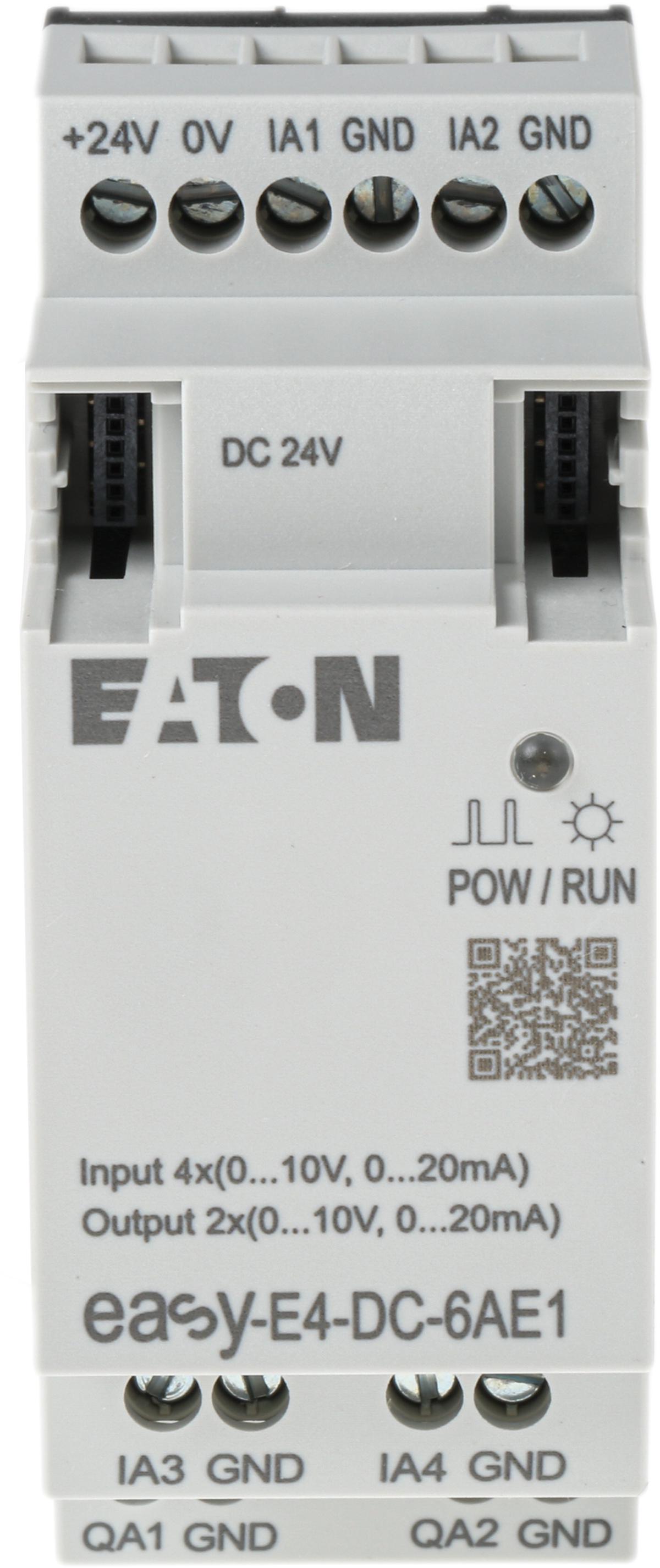 This is easy Logic Module - 4 Inputs 2 Outputs Analogue For Use With easyE4 Ethernet Networking manufactured by Eaton. The manufacturer part number is 197223 EASY-E4-DC-6AE1. Additionally, the product is supplied with 2 outputs. The given dimensions of the product include 35.5 x 58 x 90 mm. The product consists of 4 inputs. Its accurate length is 35.5mm. Furthermore, it has aanalogue output. Furthermore, the product is 58mm wide. The product comes in 90mm depth. It carries analogue input type. It has a maximum operating temperature of +55°c. Whereas, the minimum operating temperature of the product is -25°c.