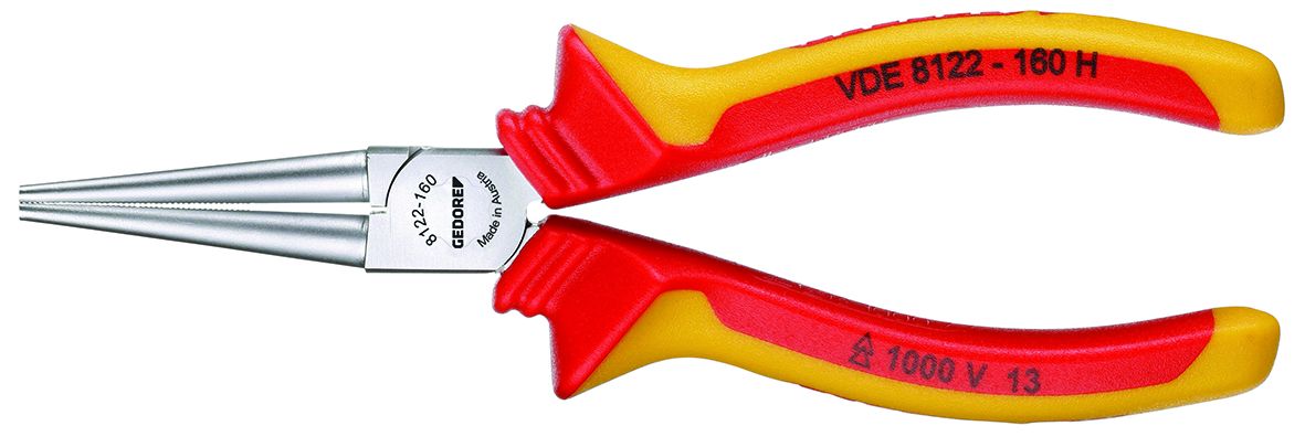This is 160 mm Steel Round Nose Pliers Jaw Length: 48mm manufactured by Gedore. The manufacturer part number is VDE 8122-160 H. The product is made from highly stable and reliable steel.