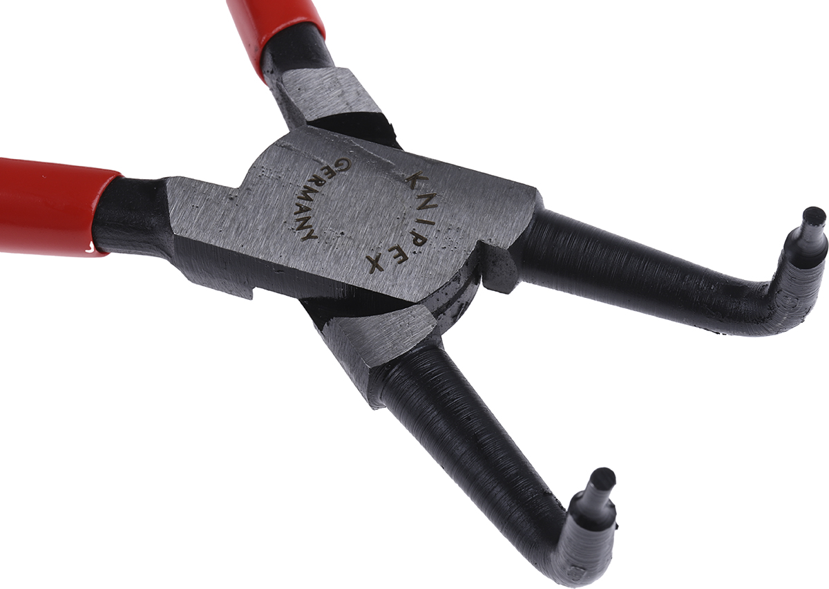This is 215 mm Chrome Vanadium Steel Circlip Pliers with Bent Tip Internal Range 40 → 100 mm manufactured by Knipex. The manufacturer part number is 44 21 J31 SB. The product is made from highly stable and reliable chrome vanadium steel.