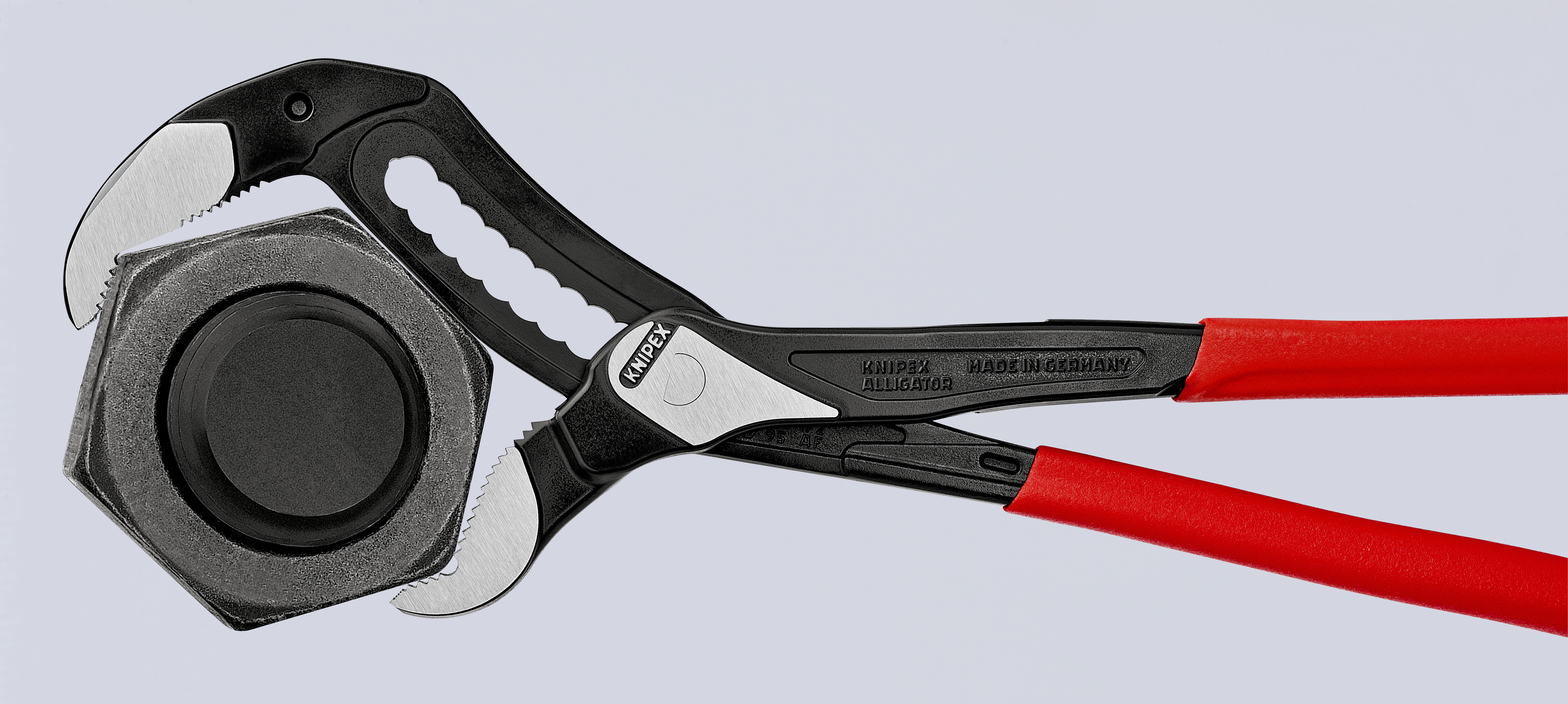 This is 400 mm Robust Water Pump Pliers Wrench with 95mm Jaw Capacity manufactured by Knipex. The manufacturer part number is 88 01 400. The product is made from highly stable and reliable chrome vanadium electric steel.