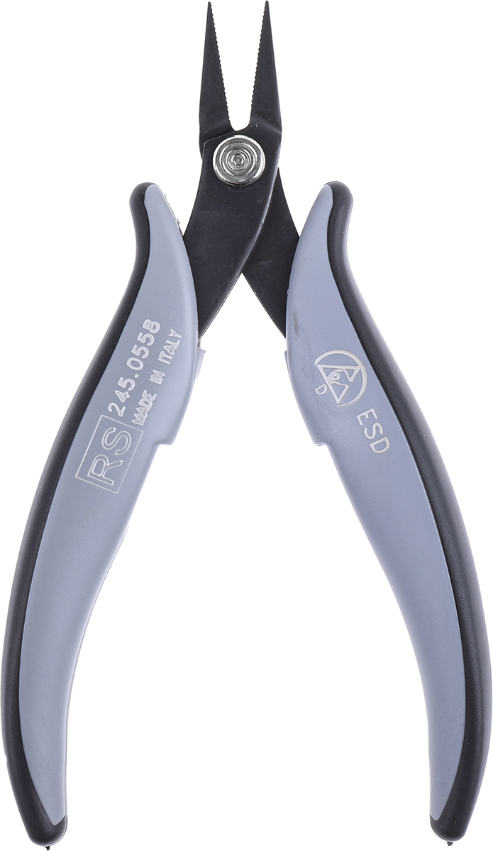This is ESD 140 mm Steel Flat Nose Pliers with 20mm Jaw manufactured by RS Pro. The manufacturer part number is 245-0558. The product is made from highly stable and reliable steel.