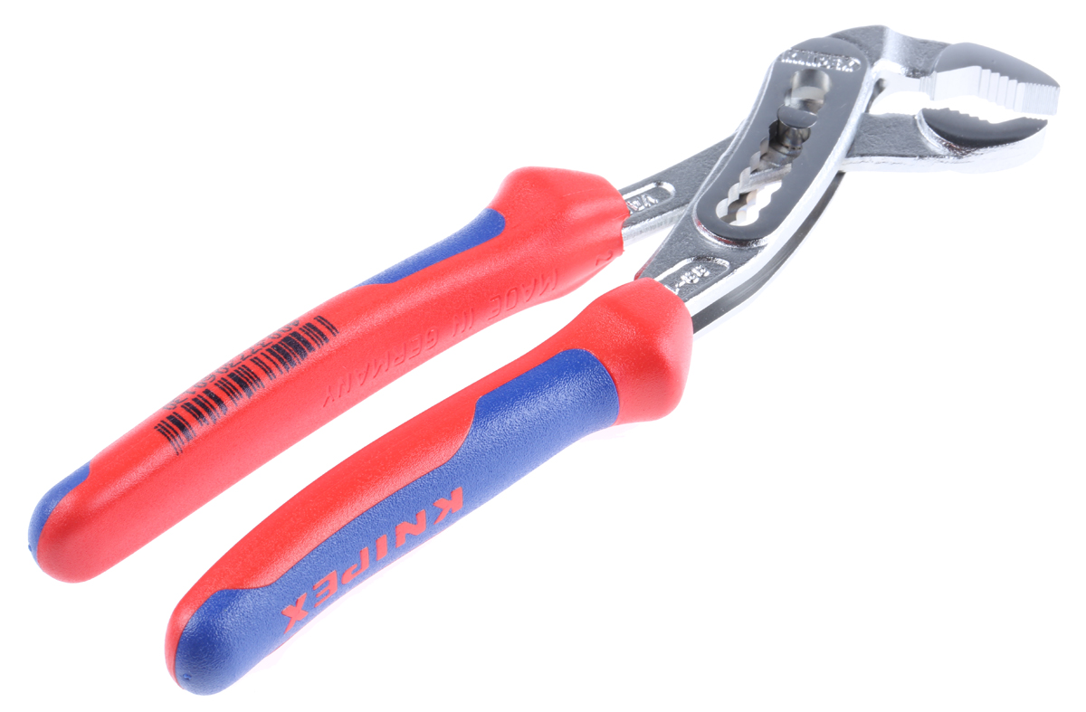 This is 180 mm One Handed Water Pump Pliers Alligator with 32mm Jaw Capacity manufactured by Knipex. The manufacturer part number is 88 05 180. The product is made from highly stable and reliable chrome vanadium electric steel.