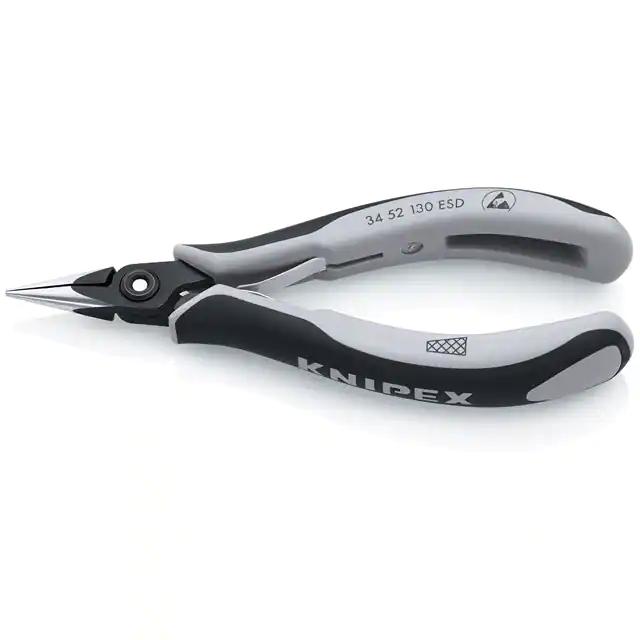 This is manufactured by Knipex Tools LP. The manufacturer part number is 34 52 130 ESD. This is basically a useful and handy electronics. It is assigned with possible HTSUS value of 8203.20.6030. It is shipped in bulk. Its accurate length is 5.25" (133.4mm). Its typical moisture sensitivity level is 1 (unlimited). In addition, it is vendor undefined. The splendid features of the product include ergonomic, esd safe, soft grips. The built-in exquisite tip is a flat nose tip. Moreover, it corresponds to 34 52, a base product number of the product. The product is designated with the ear99 code number