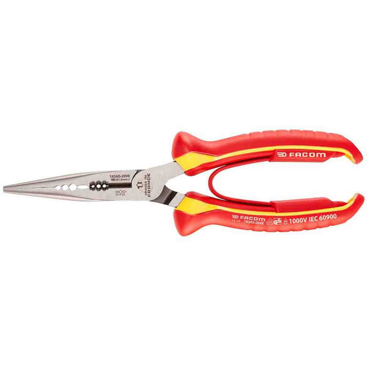 This is 1000 VOLT INSULATED ROUND NOSE PLIER manufactured by Facom. The manufacturer part number is 183AE.20VE.