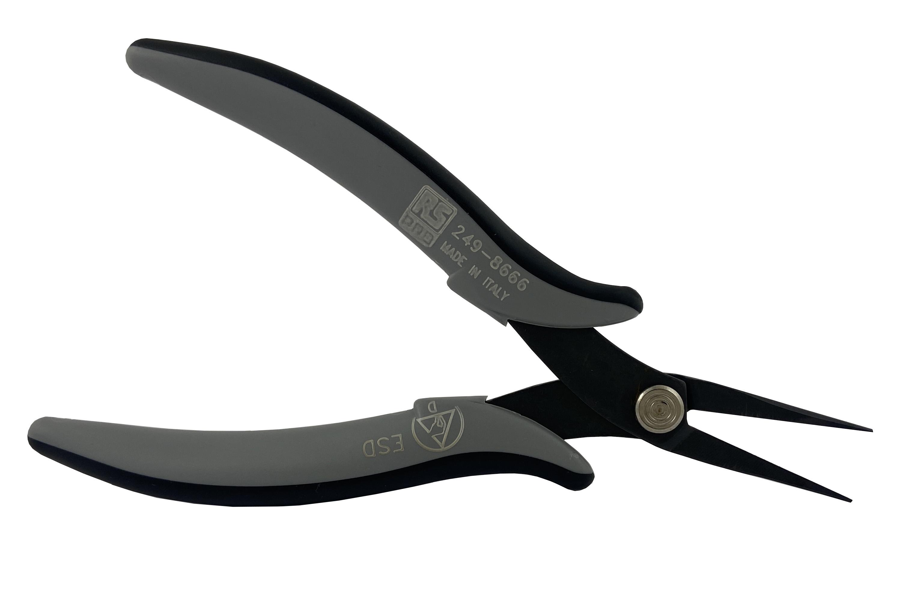 This is ESD Carbon Steel Pliers 160 mm Overall Length manufactured by RS PRO. The manufacturer part number is 249-8672. The product is made from highly stable and reliable carbon steel.