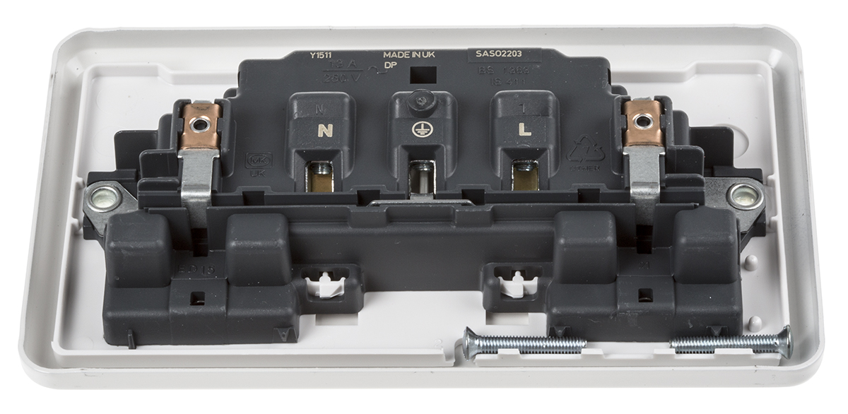 This is MK white 2 Gang Switched Power Socket Type G - British 13A Surface Mount IP2XD 2 Poles manufactured by MK Electric. The manufacturer part number is K3046 WHI. The product has a current rating of 13a. It comprises 2 gangs. The product metalclad plus, is a highly preferred choice for users. Moreover, the product has a nominal 230 v voltage rating. It has equipped with 2 poles.