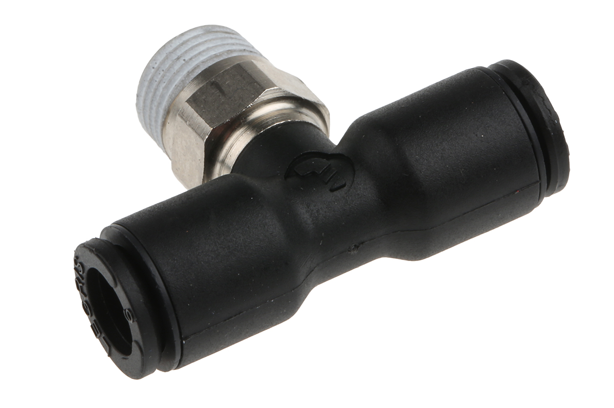 This is Pneumatic Tee Threaded-to-Tube Adapter 1/8in x 6mm x 6mm 20 bar manufactured by Legris. The manufacturer part number is 3108 06 10. The product's body is nicely designed from glass reinforced nylon materials. Whereas, the minimum operating temperature of the product is -20°c. It has a maximum operating temperature of +80°c.