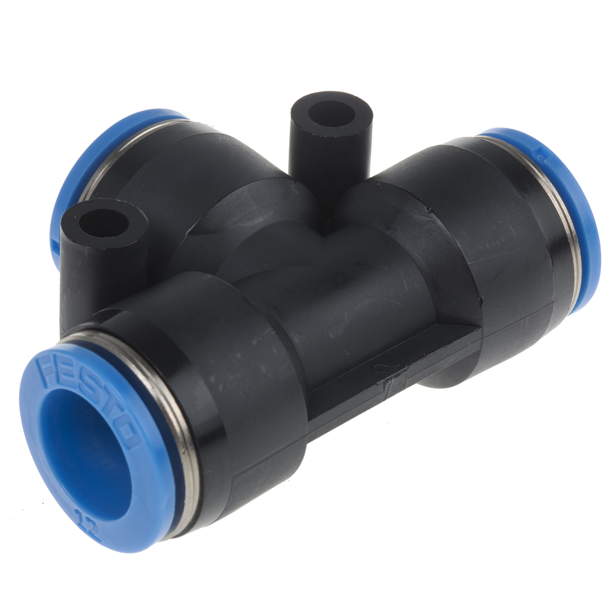 This is QST Pneumatic Tee Tube-to-Tube Adapter Push In 12 mm x Push In 12 mm x Push In 12 mm manufactured by Festo. The manufacturer part number is QST-12. The product is available in inline configuration. The product's body is nicely designed from pbt materials. Whereas, the minimum operating temperature of the product is -10°c. It has a maximum operating temperature of +80°c.