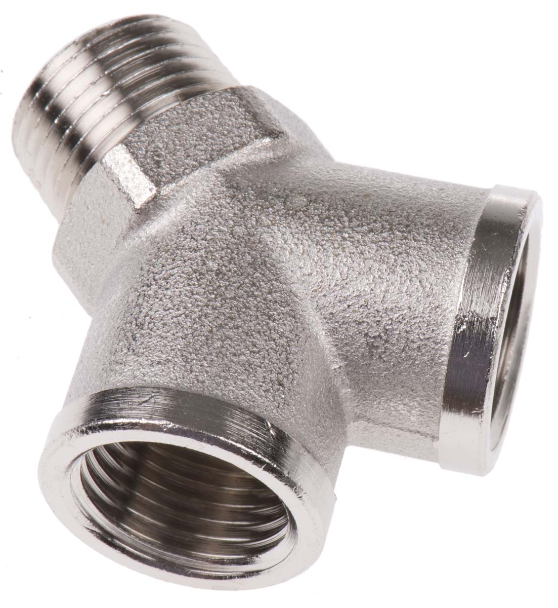 This is 0911 Brass Pneumatic Y Threaded Adapter R 1/2 Male x G 1/2 Female 1/2in manufactured by Legris. The manufacturer part number is 0911 00 21. A quality product with a nice nickel plated finish. The product's body is nicely designed from brass materials. Whereas, the minimum operating temperature of the product is -10°c. It has a maximum operating temperature of +80°c.
