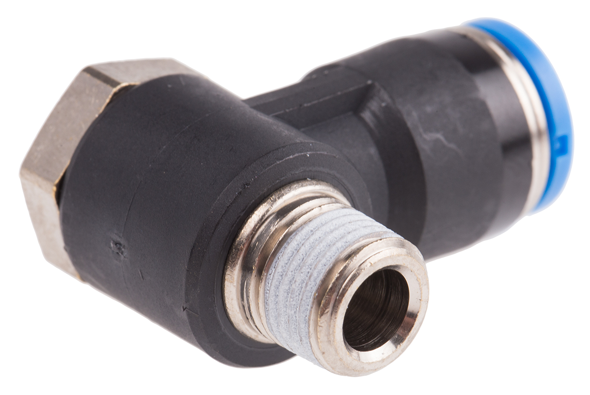 This is Pneumatic Elbow Threaded-to-Tube Adapter R 1/8 Male Push In 8 mm 8mm Tube Connection manufactured by Festo. The manufacturer part number is QSLV-1/8-8. The product is available in inline configuration. The product's body is nicely designed from pbt materials. Whereas, the minimum operating temperature of the product is -10°c. It has a maximum operating temperature of +80°c.