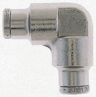 This is Pneumatic Elbow Tube-to-Tube Adapter Push In Connection A 10mm B 10mm manufactured by Norgren. The manufacturer part number is 100401000. A quality product with a nice nickel plated finish. The product's body is nicely designed from nickel plated brass materials. Whereas, the minimum operating temperature of the product is -20°c. It has a maximum operating temperature of +80°c.