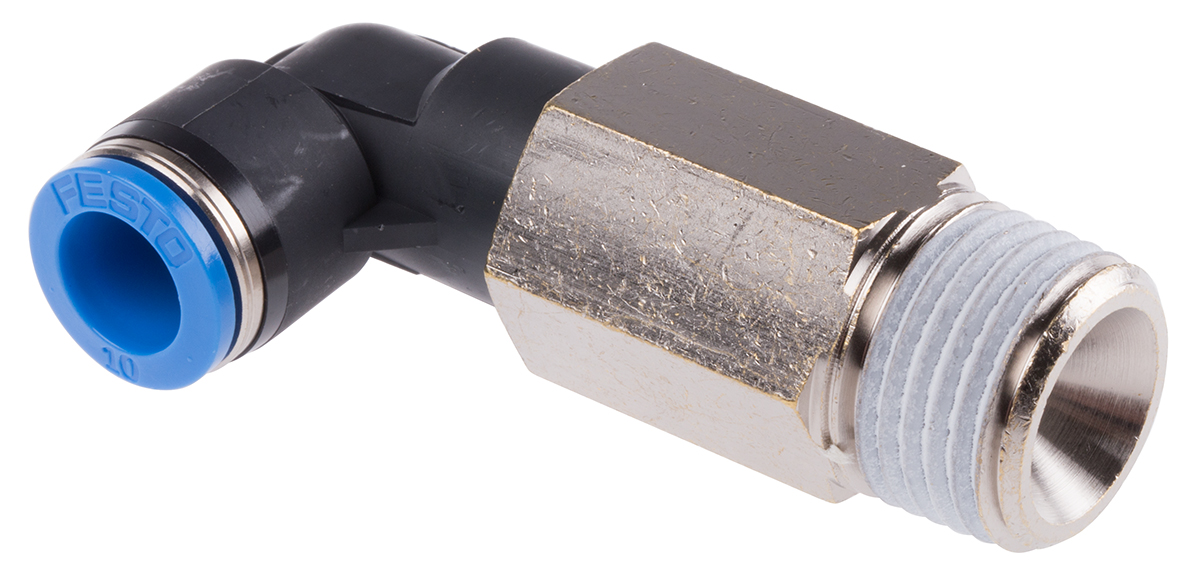 This is Pneumatic Elbow Threaded-to-Tube Adapter R 1/2 Male Push In 10 mm 10mm Tube Connection manufactured by Festo. The manufacturer part number is QSLL-1/2-10. The product is available in inline configuration. The product's body is nicely designed from pbt materials. Whereas, the minimum operating temperature of the product is -10°c. It has a maximum operating temperature of +80°c.