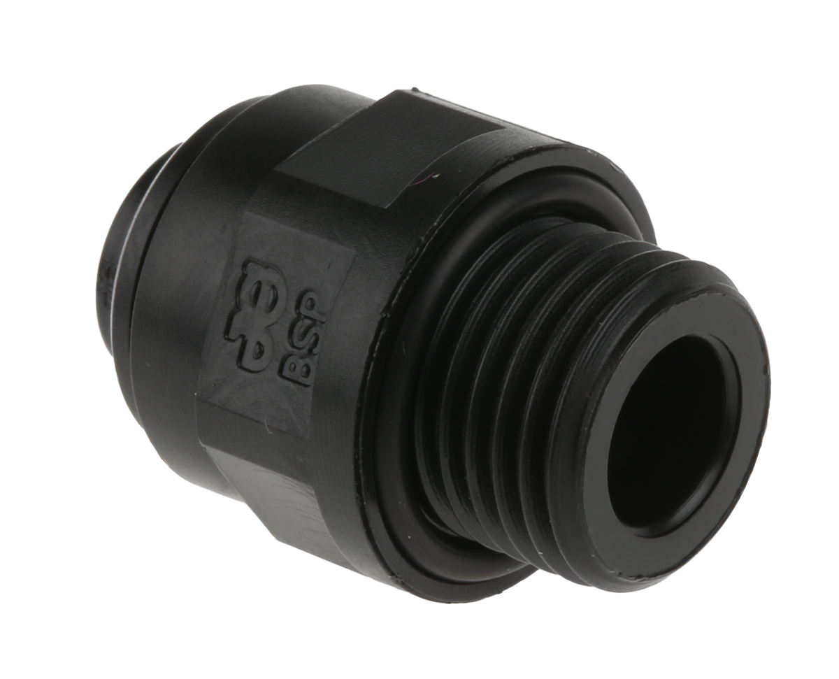 This is Pneumatic Straight Threaded-to-Tube Adapter G 1/4 Male Push In 6 mm manufactured by John Guest. The manufacturer part number is PM010612E. The product is available in inline configuration. The product's body is nicely designed from acetal copolymer materials. Whereas, the minimum operating temperature of the product is -20°c. It has a maximum operating temperature of +65°c.