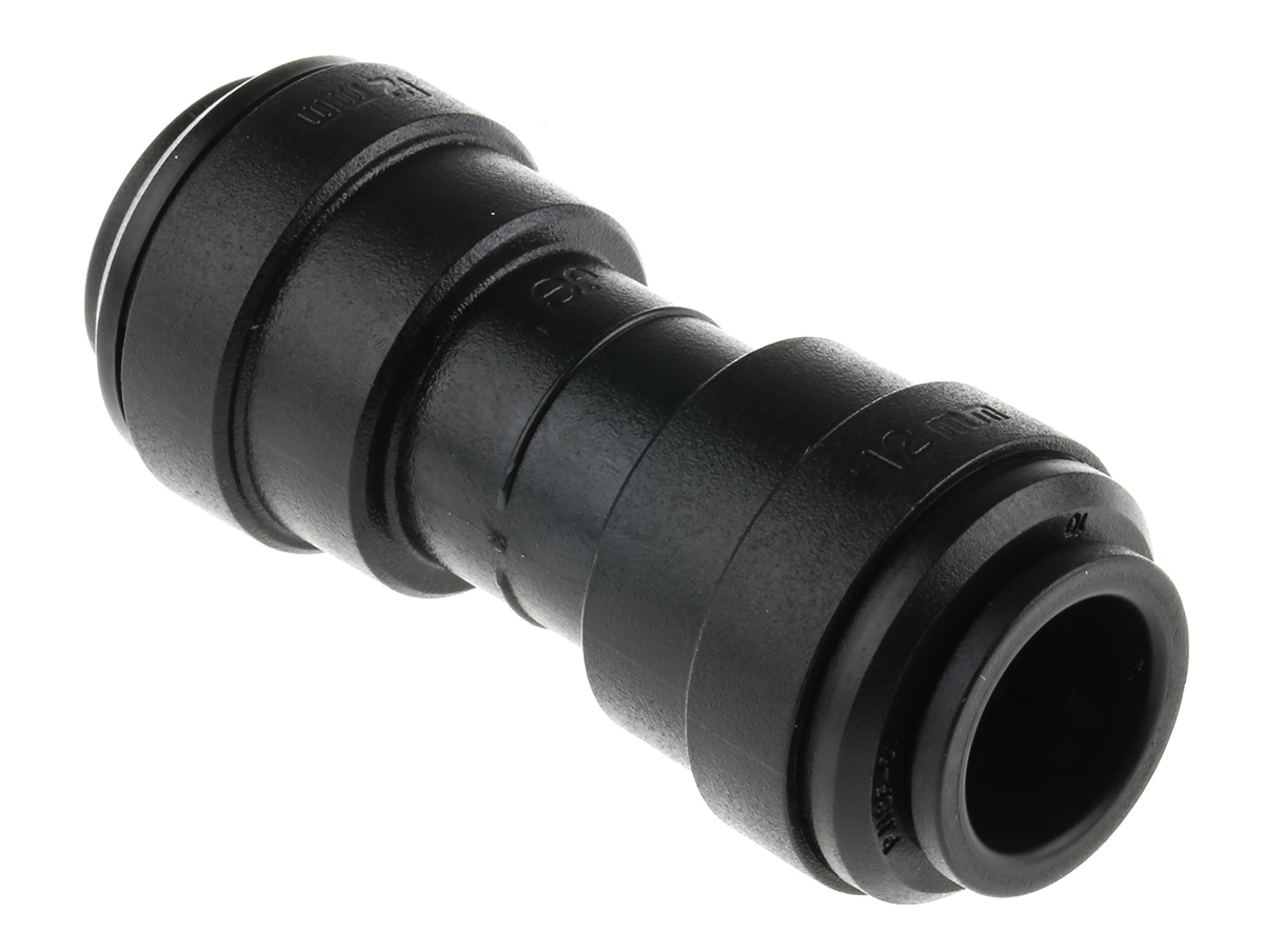 This is PM Pneumatic Straight Tube-to-Tube Adapter Push In 12 mm manufactured by John Guest. The manufacturer part number is PM0412E. The product's body is nicely designed from acetal copolymer materials. Whereas, the minimum operating temperature of the product is -20°c. It has a maximum operating temperature of +65°c.