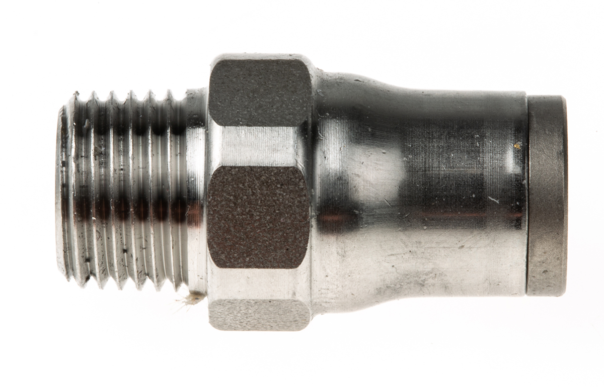 This is Pneumatic Straight Threaded-to-Tube Adapter NPT 1/8 Male Push In 6 mm manufactured by Legris. The manufacturer part number is 3805 06 11. The product is available in inline configuration. The product's body is nicely designed from stainless steel materials. Whereas, the minimum operating temperature of the product is -15°c. It has a maximum operating temperature of +110°c.