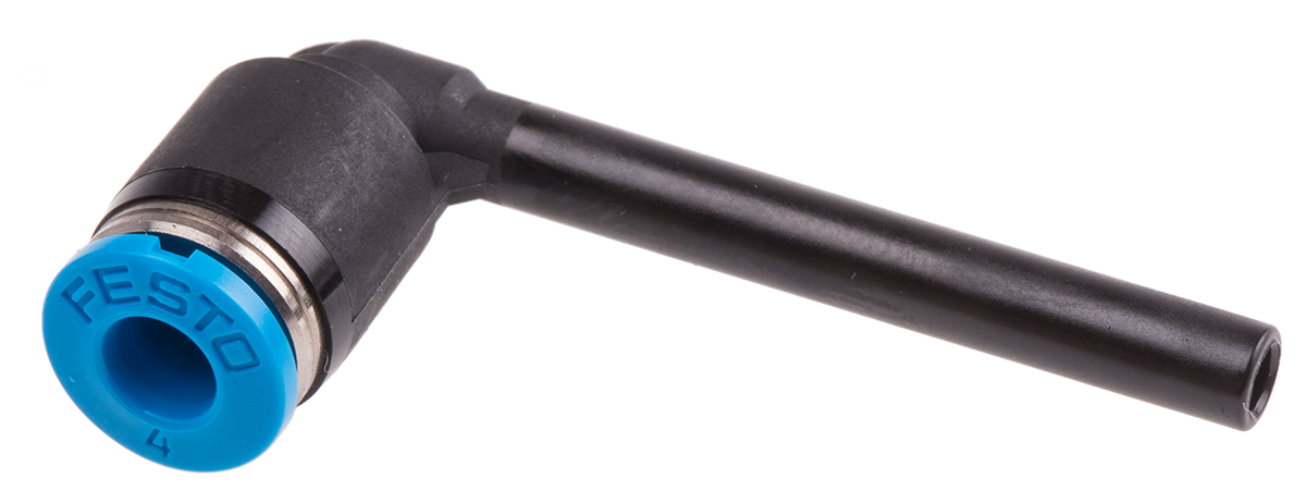 This is Pneumatic Elbow Tube-to-Tube Adapter Push In 4 mm to Push In 4 mm manufactured by Festo. The manufacturer part number is QSL-4HL. The product is available in inline configuration. The product's body is nicely designed from pbt materials. Whereas, the minimum operating temperature of the product is -10°c. It has a maximum operating temperature of +80°c.